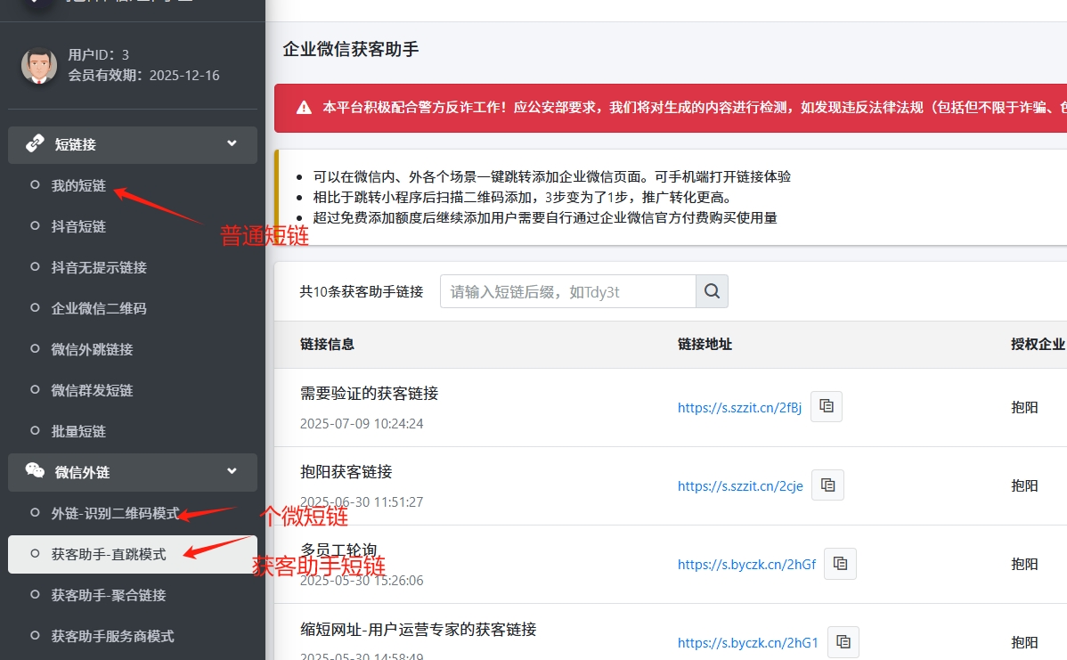 复制在本平台生成的短链(如我的短链、微信外链等)
